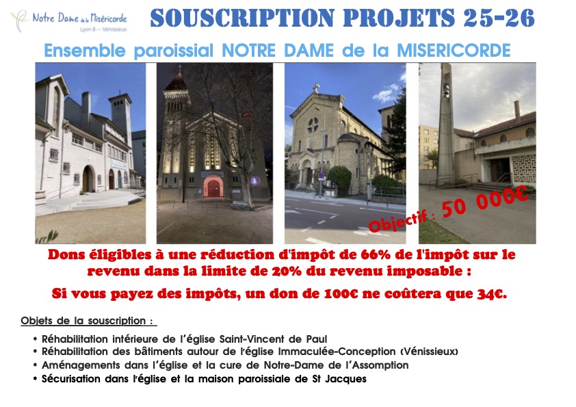 Pour l'année 2025-2026, l'ensemble paroissial Notre-Dame de la Miséricorde projette des travaux :
