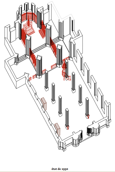 (1) Le déplacement des palissades fermant les chapelles de la Sainte Vierge et de sainte Catherine à leur emplacement initial c’est-à-dire : à la croisée du transept,